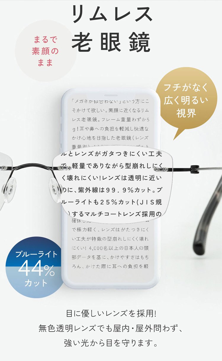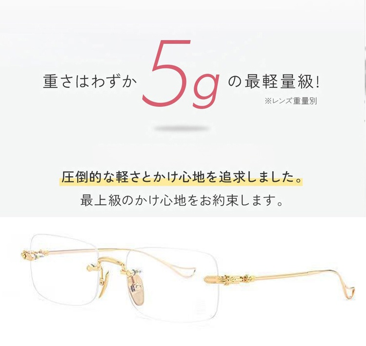一本で近くから遠くまで、幅広い度数に対応します。 つけていることを忘れるほど軽い、超軽量設計(約5g)。