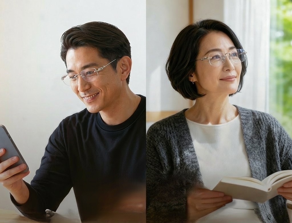 ブルーライトカットと調光機能を搭載し、度数が変化しても自動で馴染むため、頻繁な買い替えが不要に。これ一本で長く愛用いただけます。